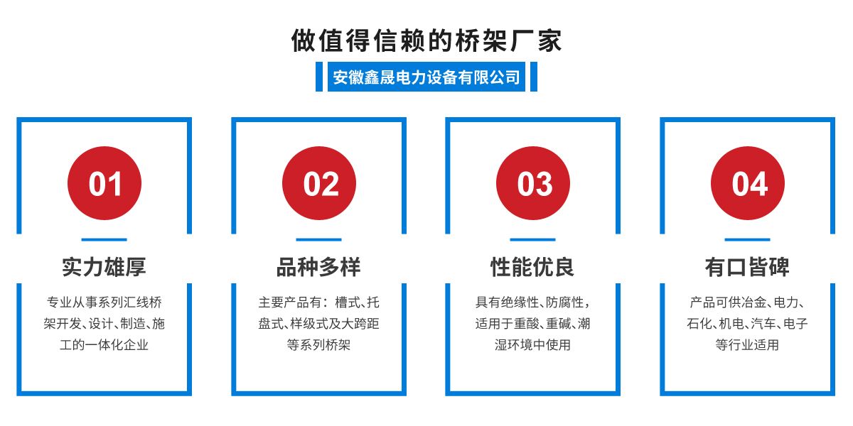 - 安徽鑫晟電力設(shè)備有限公司是專注從事系列匯線橋架開發(fā)、設(shè)計(jì)、制造、施工的一體化企業(yè),主要產(chǎn)品有:槽式、托盤式、梯級(jí)式及大跨距等系列橋架。產(chǎn)品選用冷軋或熱軋鋼板井對(duì)...